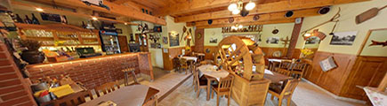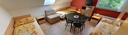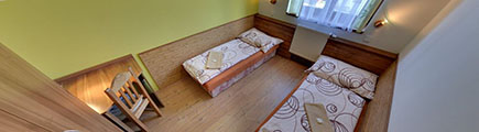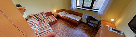 1. pohled do ubytovací kanceláře a venkovních prostor 2. pokoje standard 3. pokoje nadstandard 4. apartmán 5. pohled do hospůdky a na venkovní posezení | ||